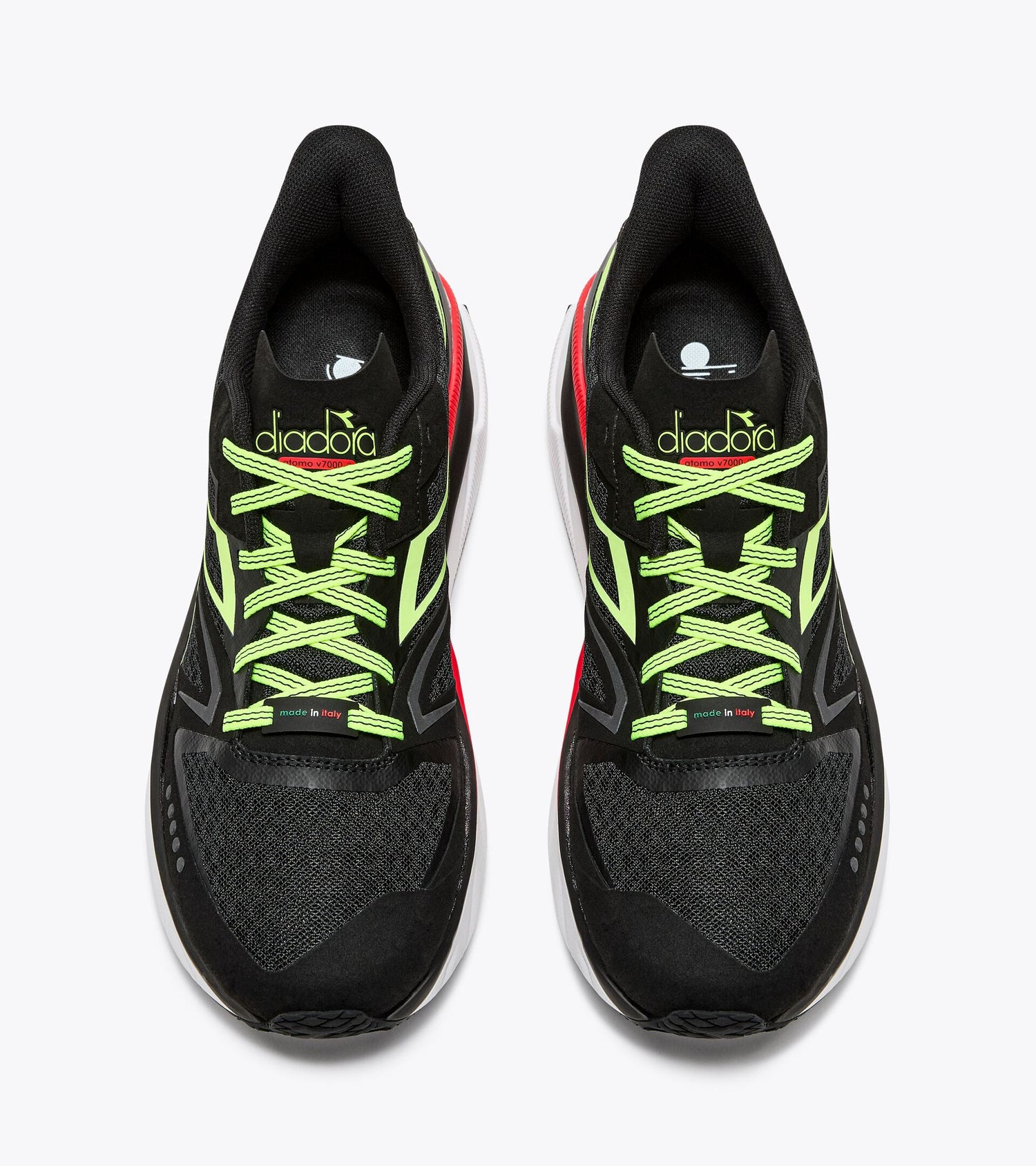 イタリアのクラフトマンシップと最先端のテクノロジーを搭 載した唯一のイタリア製ランニングシューズです。 わずか 260 グラムで、最も軽いランニング シューズの 1 つです。