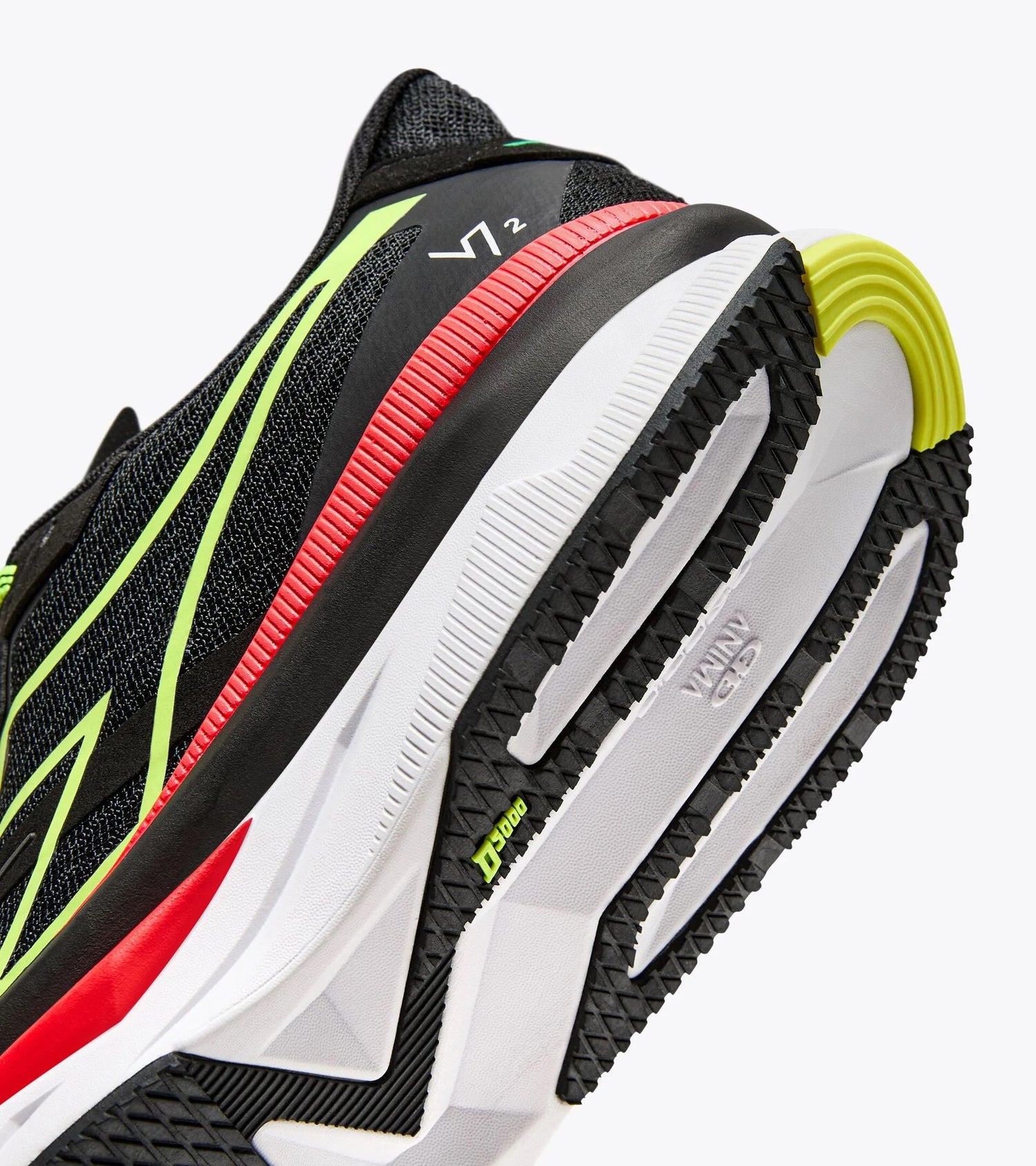 快適に走るために、新技術のDD Anima テクノロジーで作られたミッドソールは、軽量性と反応性を提供するように設計されています。自社開発ラボ「Centro Ricerche Diadora」 と連携し、最高のフットウェアテクノロジーを開発しました。ATOMO V7000 は、イタリアに息づく職人技とノウハウ、そして価値あるイタリアローカル産業へ投資をするDiadora の取り組みを象徴するランニングシューズです。