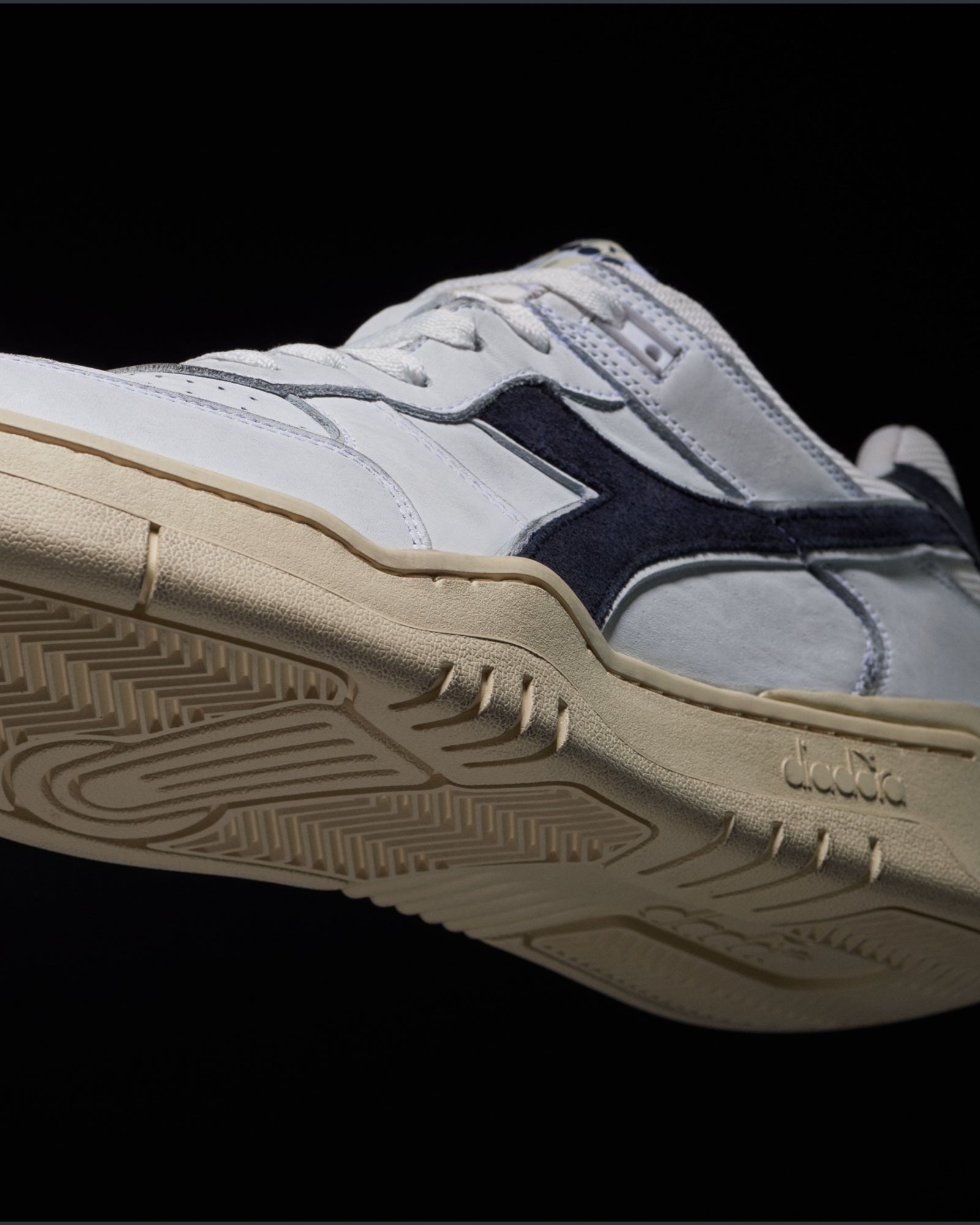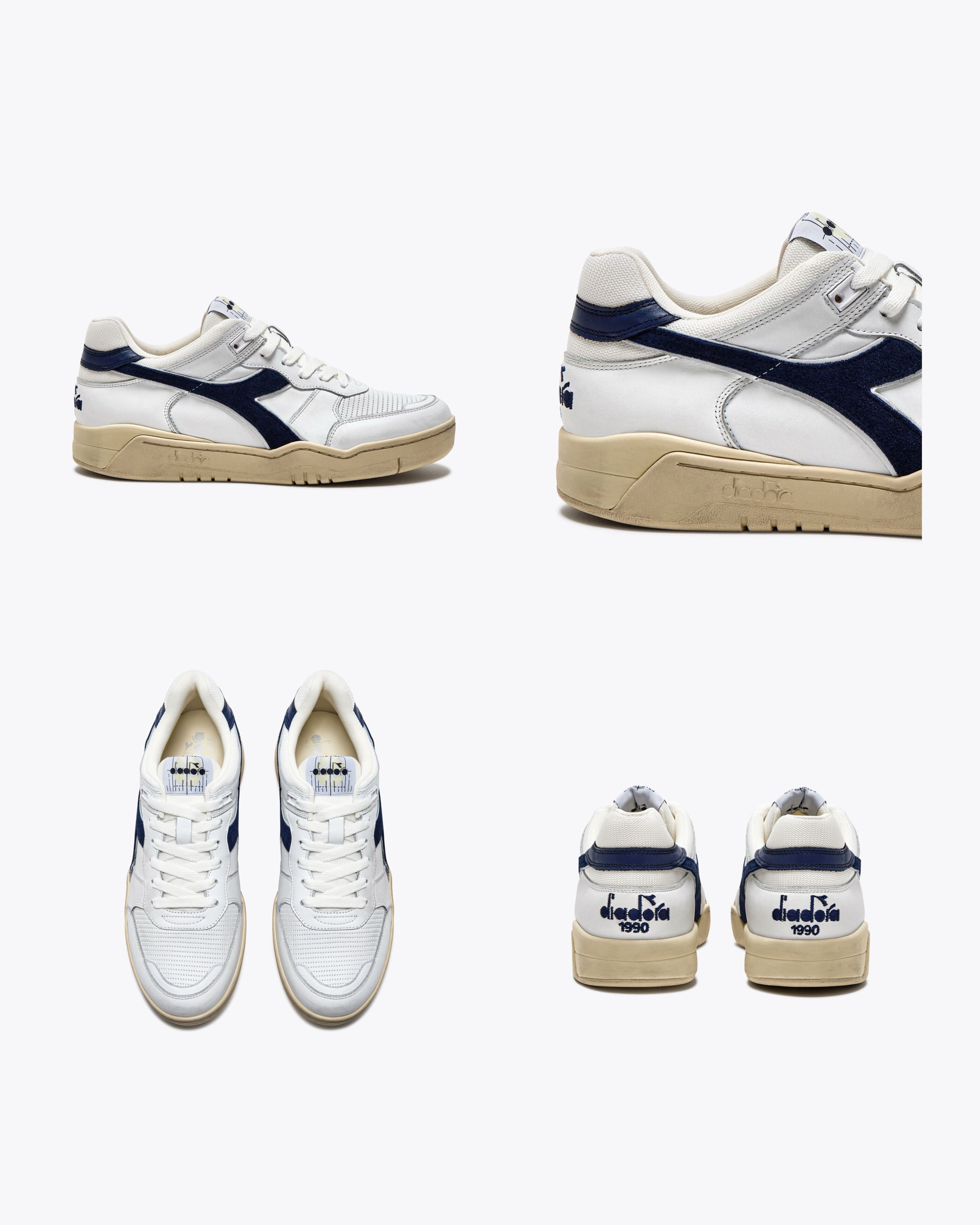 ディアドラ。テニスシューズ。90年代。このシューズは、今では「B.560」として知られていますが、もともとはアーカイブされたクラシックモデルです。それを現代風にアレンジしたのが、この新しいデザインです。木型やソールの部分は、1990年当時のパフォーマンスシューズの特徴をそのまま再現しています。