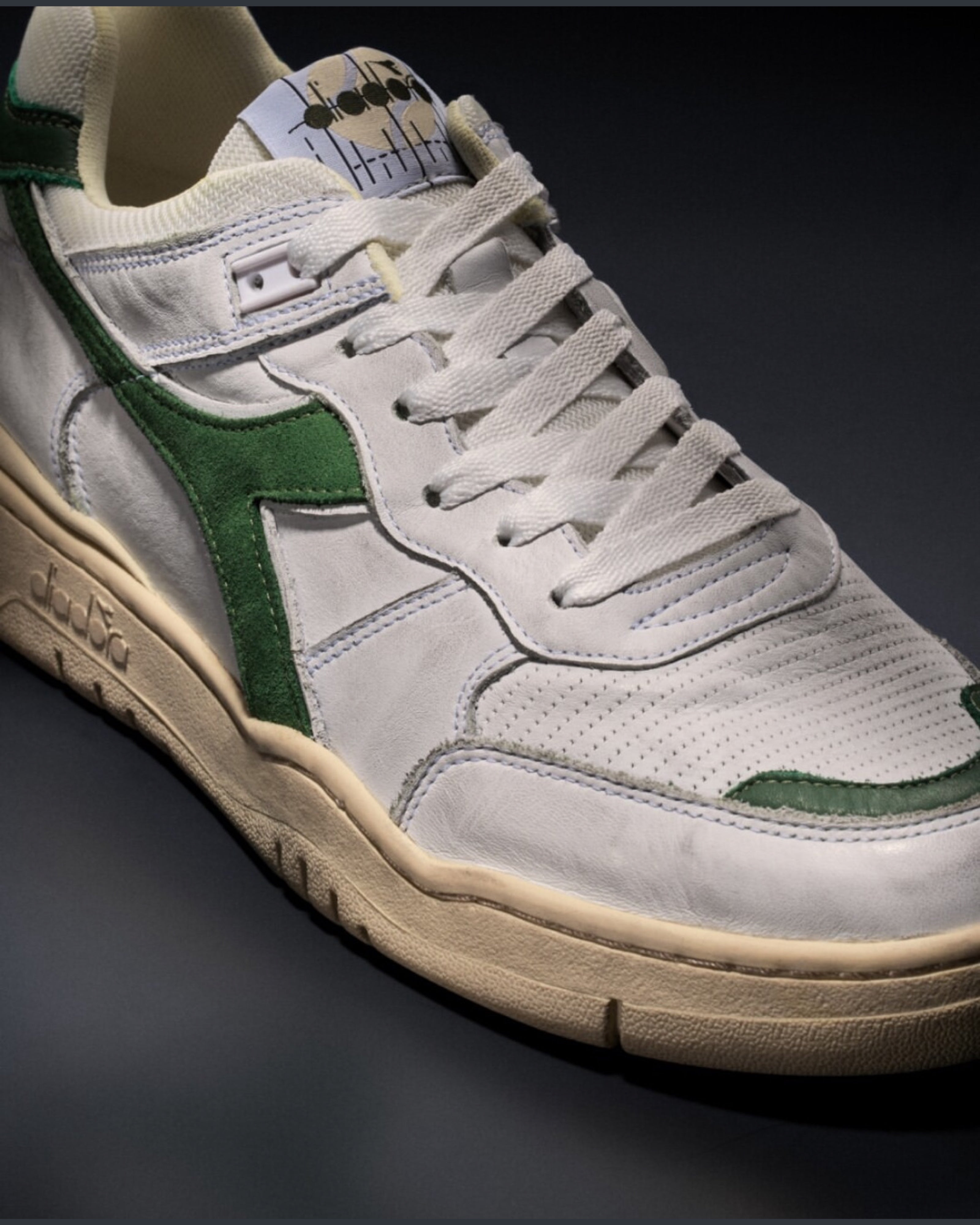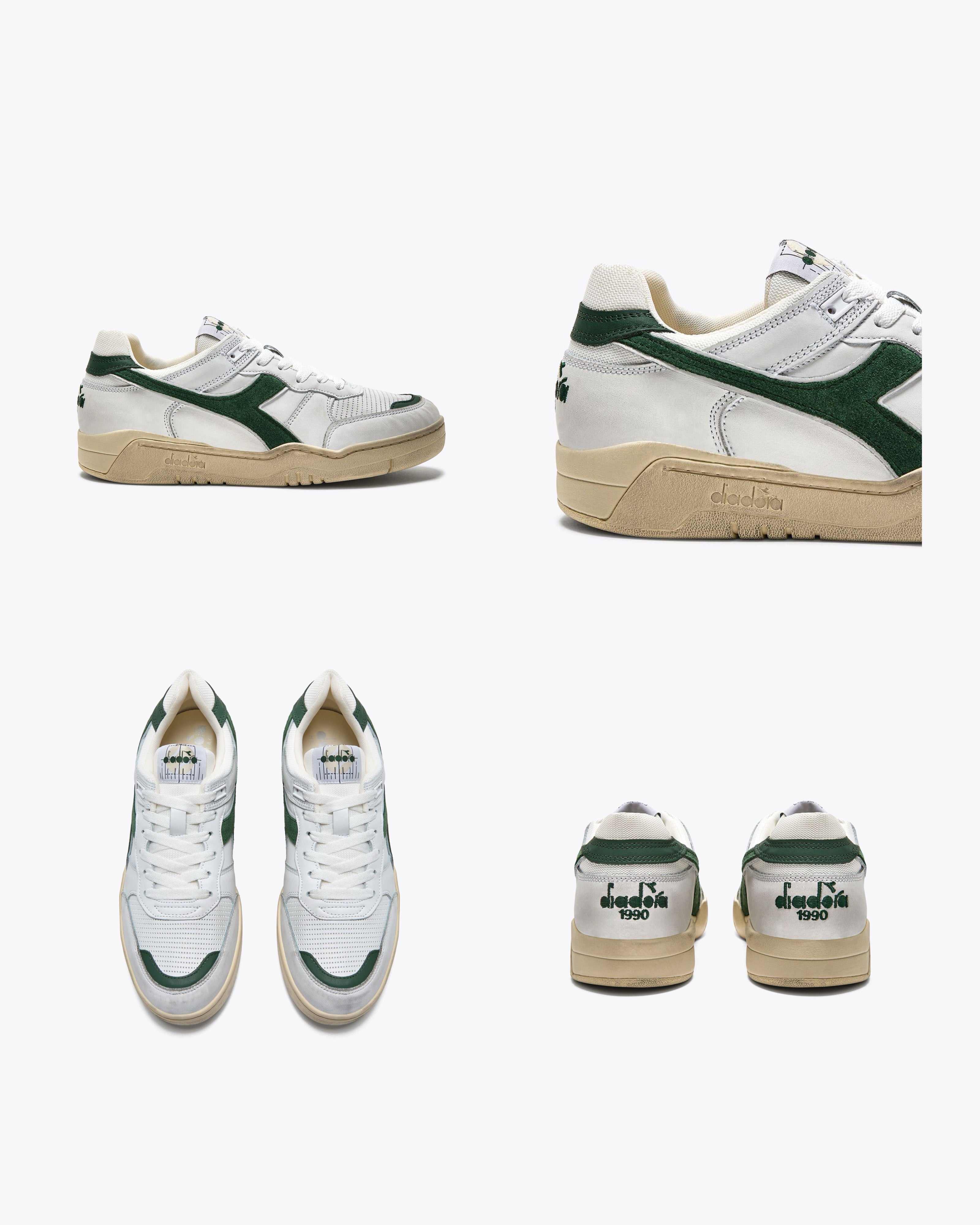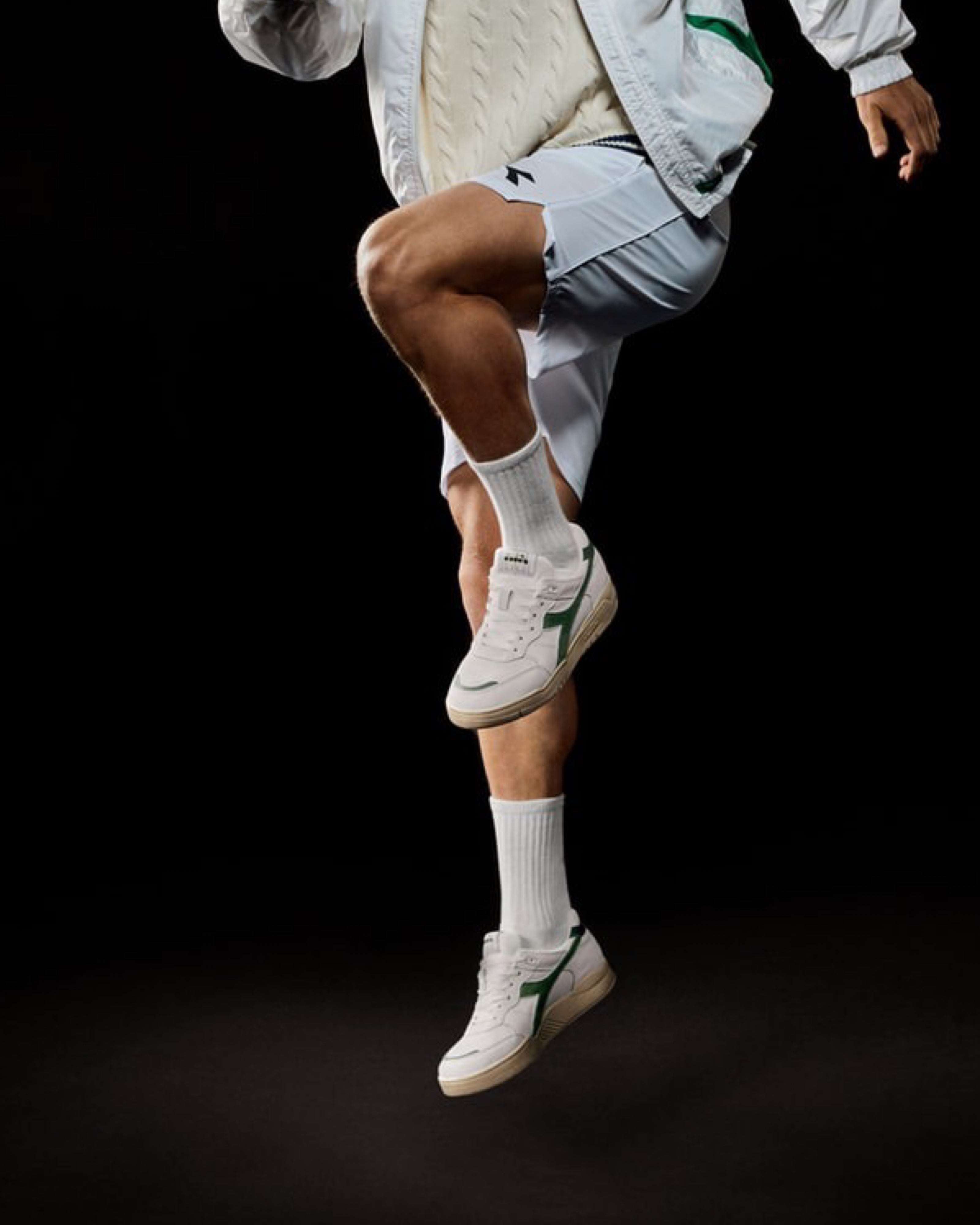 ディアドラ。テニスシューズ。90年代。このシューズは、今では「B.560」として知られていますが、もともとはアーカイブされたクラシックモデルです。それを現代風にアレンジしたのが、この新しいデザインです。木型やソールの部分は、1990年当時のパフォーマンスシューズの特徴をそのまま再現しています。