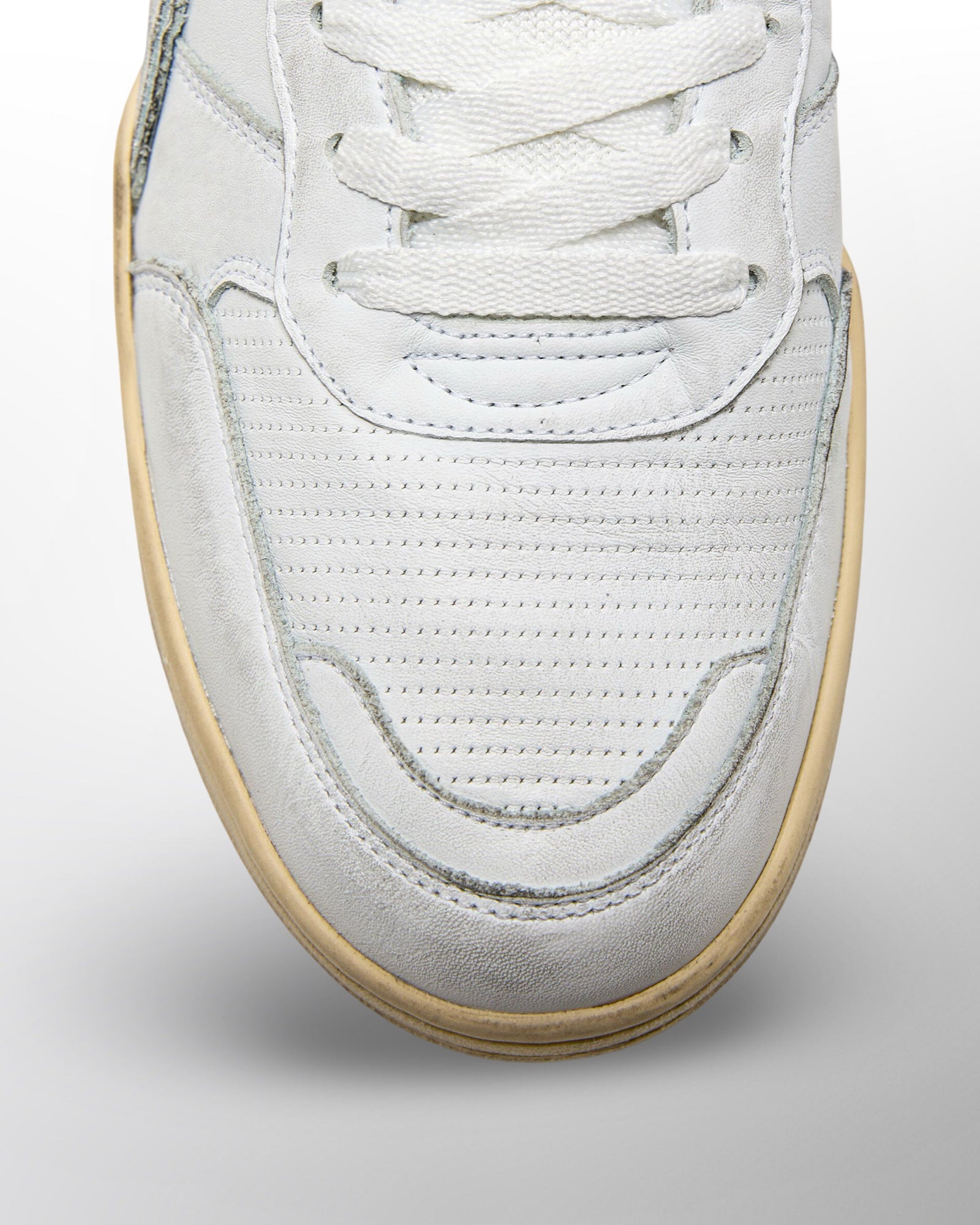 ディアドラ ヘリテージスニーカーの特徴的なディテールであるストーンウォッシュ加工により、レザーが柔らかく仕上げられています。