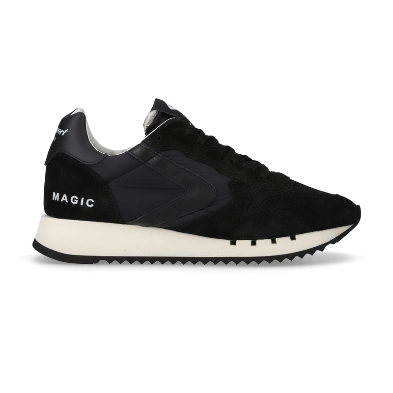 ■インソールにはMMWの刻印ランニングシューズならではのスポーティーな要素を随所に採用した躍動感あふれるモデルです。手作業で組み立て裁断されたソールはダイナミックな曲線を描きます。アッパーは、異素材をバランスよく構成することでビンテージ感を体現し、こなれ感が演出されました。こちらのモデルは、ファッションディレクター干場氏監修の数量限定モデル。イタリア製のブラックスウェードやメッシュ素材を組み合わせたエクスクルーシブモデル。オリジナルのMAGICシリーズにはないクールでクラシックな魅力を持ち合わせています。着用サイズ:43