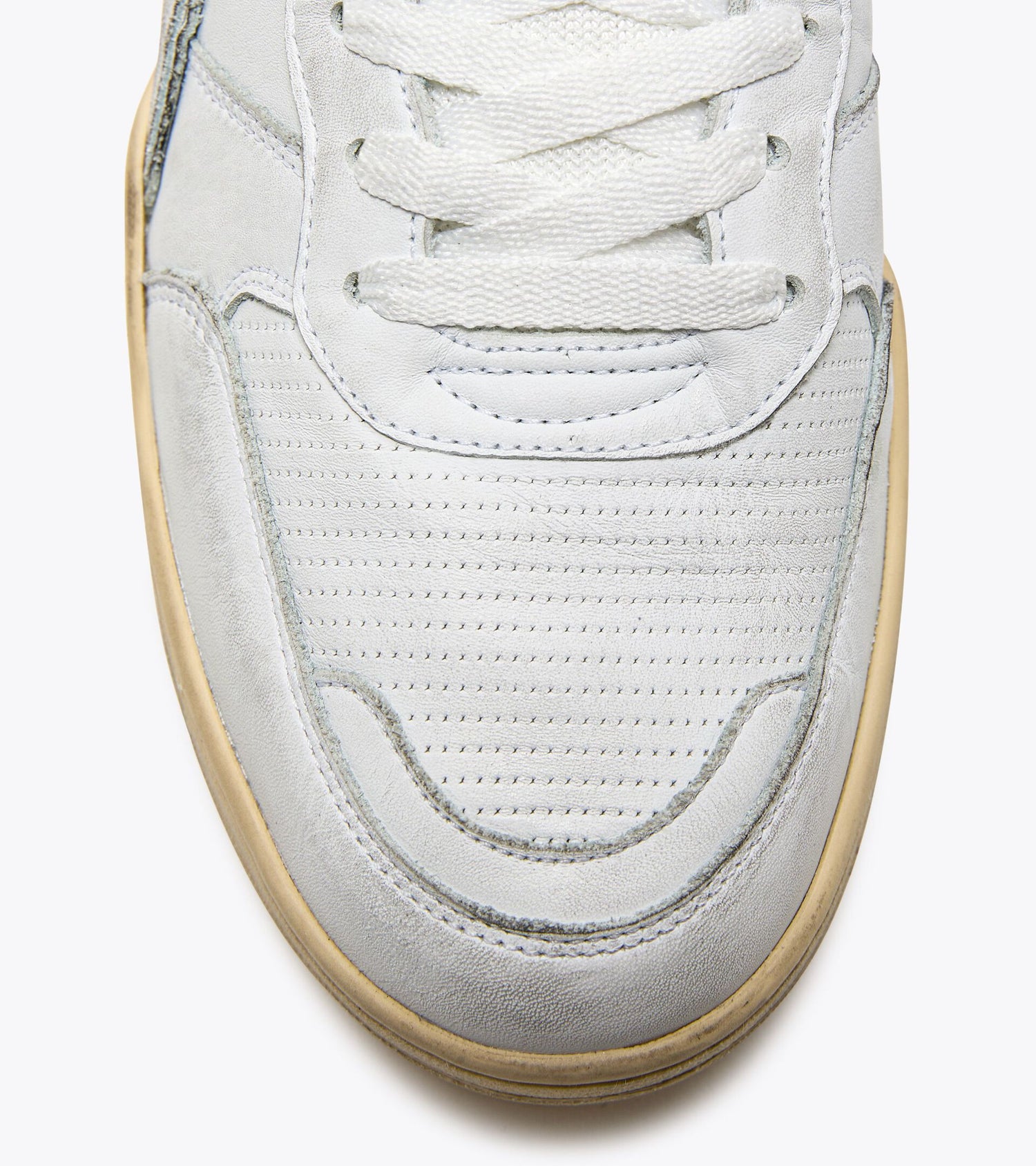 ディアドラ ヘリテージスニーカーの特徴的なディテールであるストーンウォッシュ加工により、レザーが柔らかく仕上げられています。