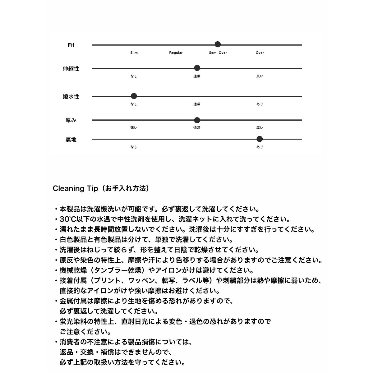 表地1:ポリエステル(97%)アクリル(3%)