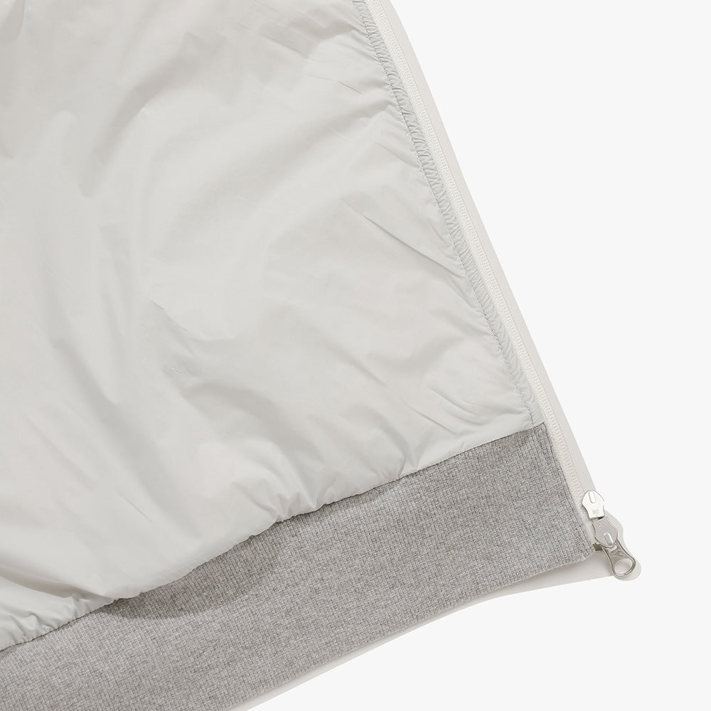 フードはストリング仕様でフィット感の調整が可能。さまざまなシルエット演出ができ、フロントジップを採用することで実用性を高めました。