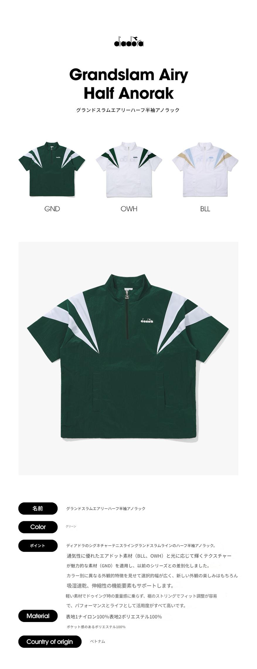 Diadora アパレル GLANDSLAM AIRY HALF ANORAK ポロシャツ - UNISEX - ホワイト/グリーン