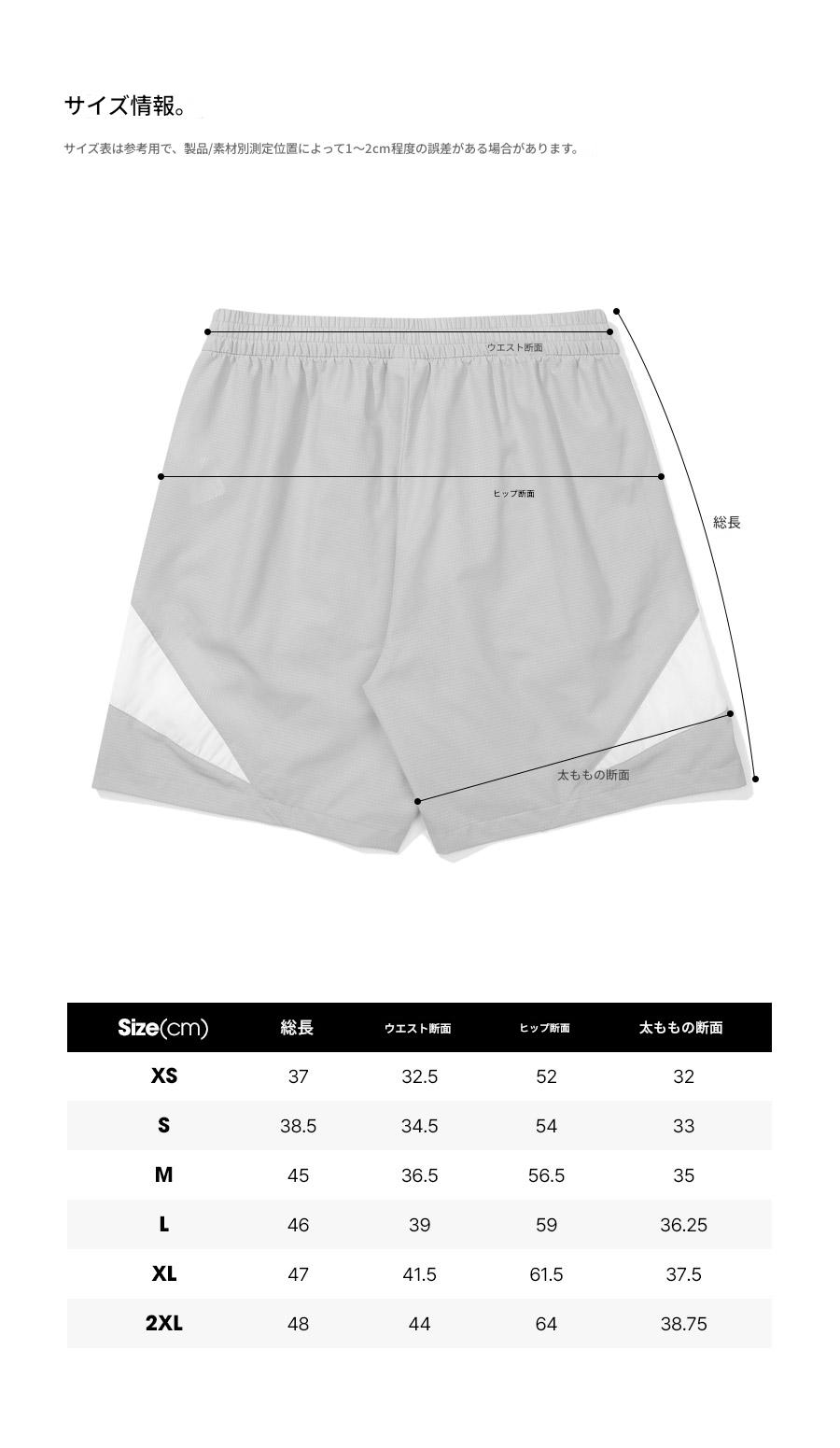 サイズ表(GLANDSLAM AIRY HALF PANTS)