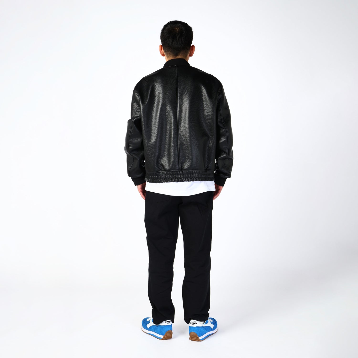 素材は柔らかいピッグスキン レザーで作られ、独特の使い古したような特徴を与えるストーンウォッシュ加工で仕上げられています。